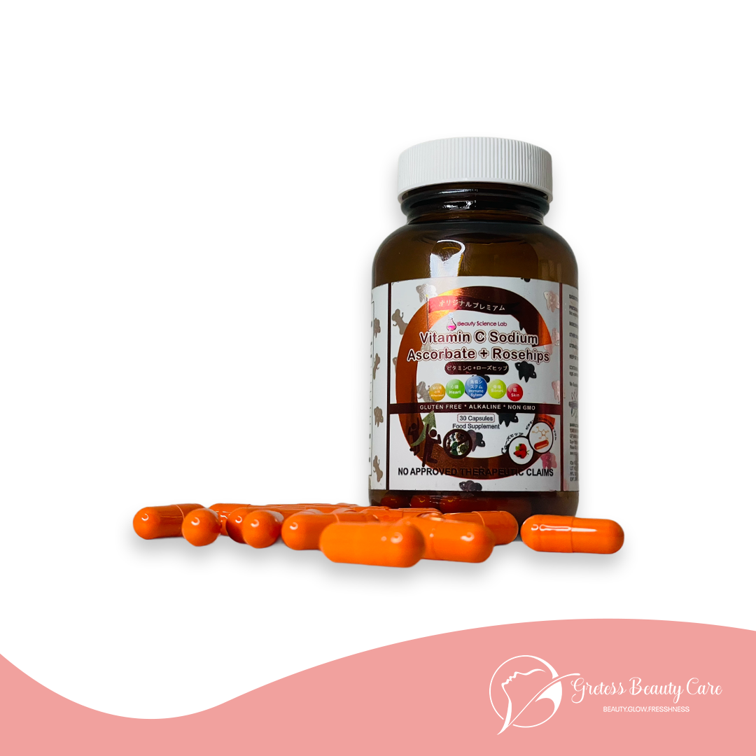 BENIFITS OF VITAMIN C ROSEHIPS protects us from desease and viruses arround it helps to blemish our skin and look pinkish because of rosehips all helps our scars to be lighten and fade gives nutrition to the bones, joints giving us more stronger body to avoid us from viruses HOW TO TAKE 1 capsule a day